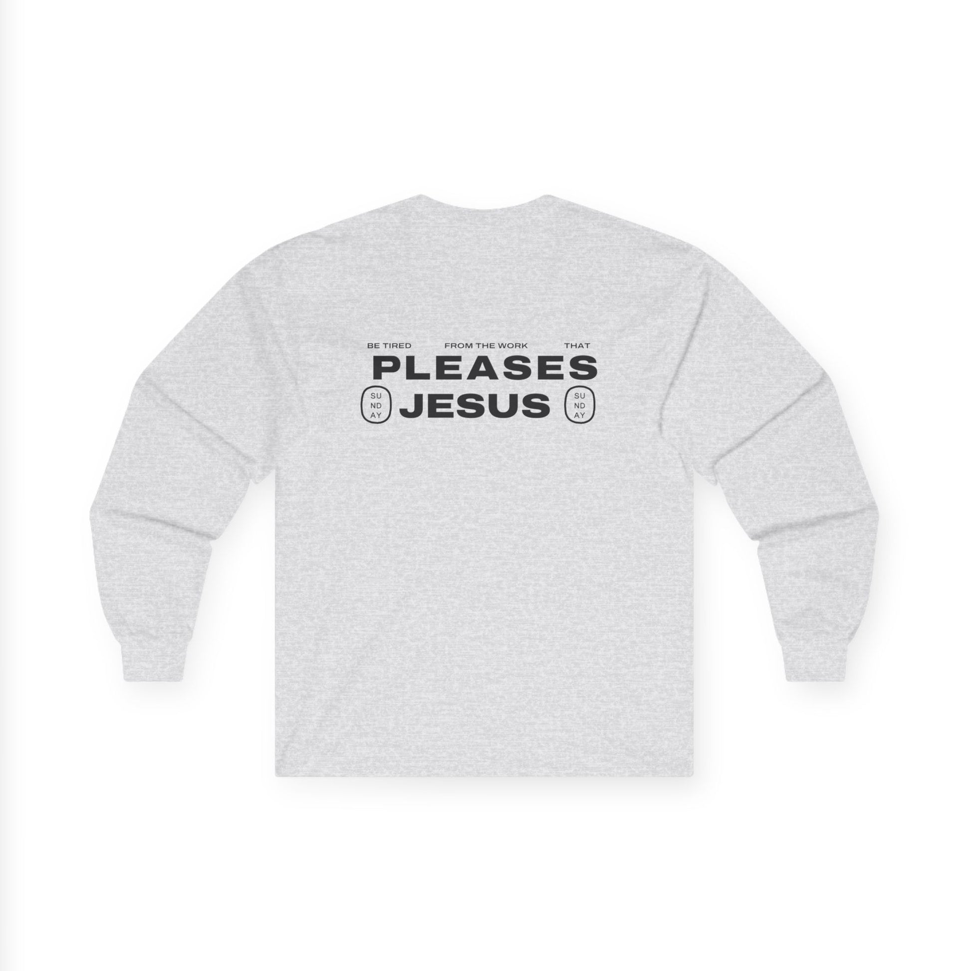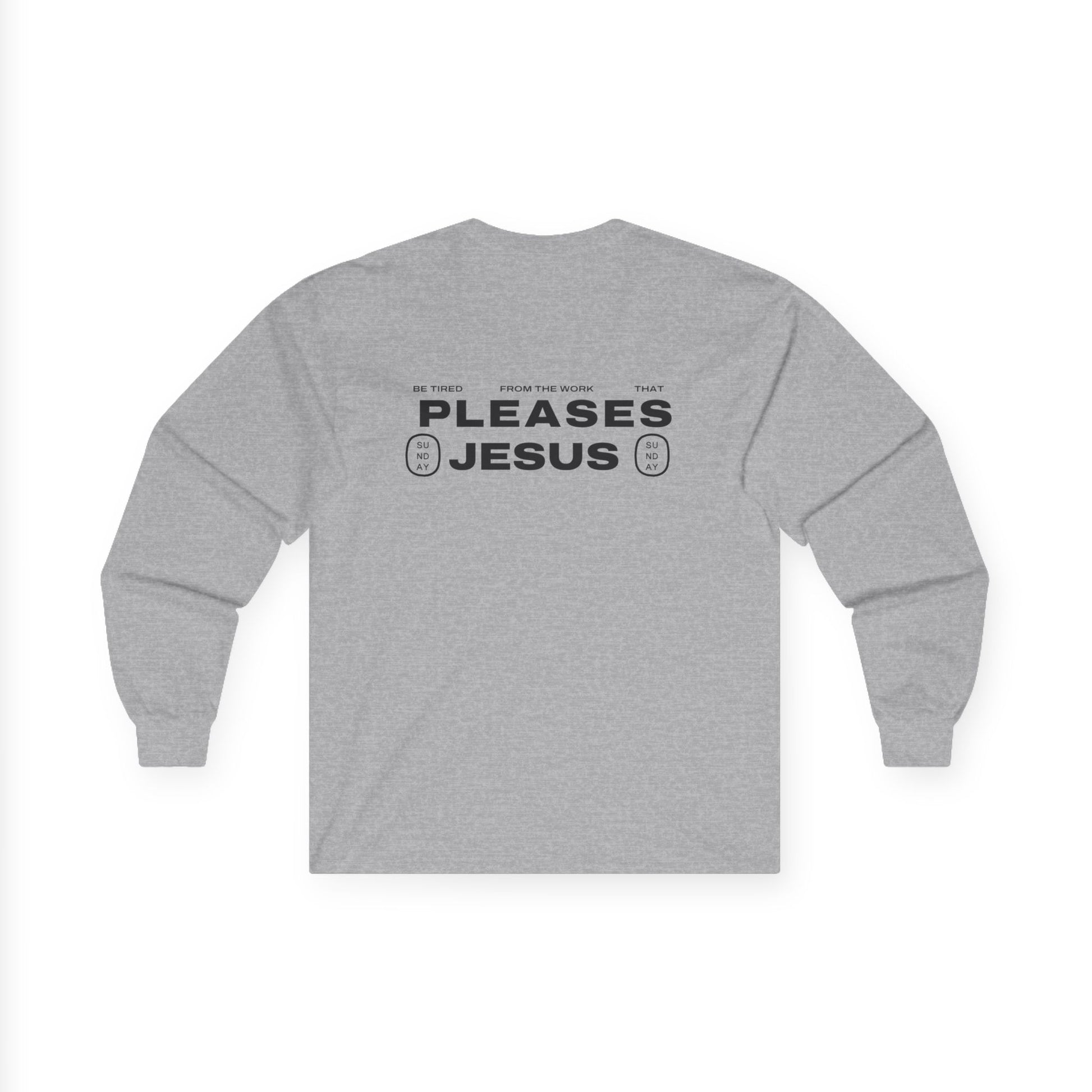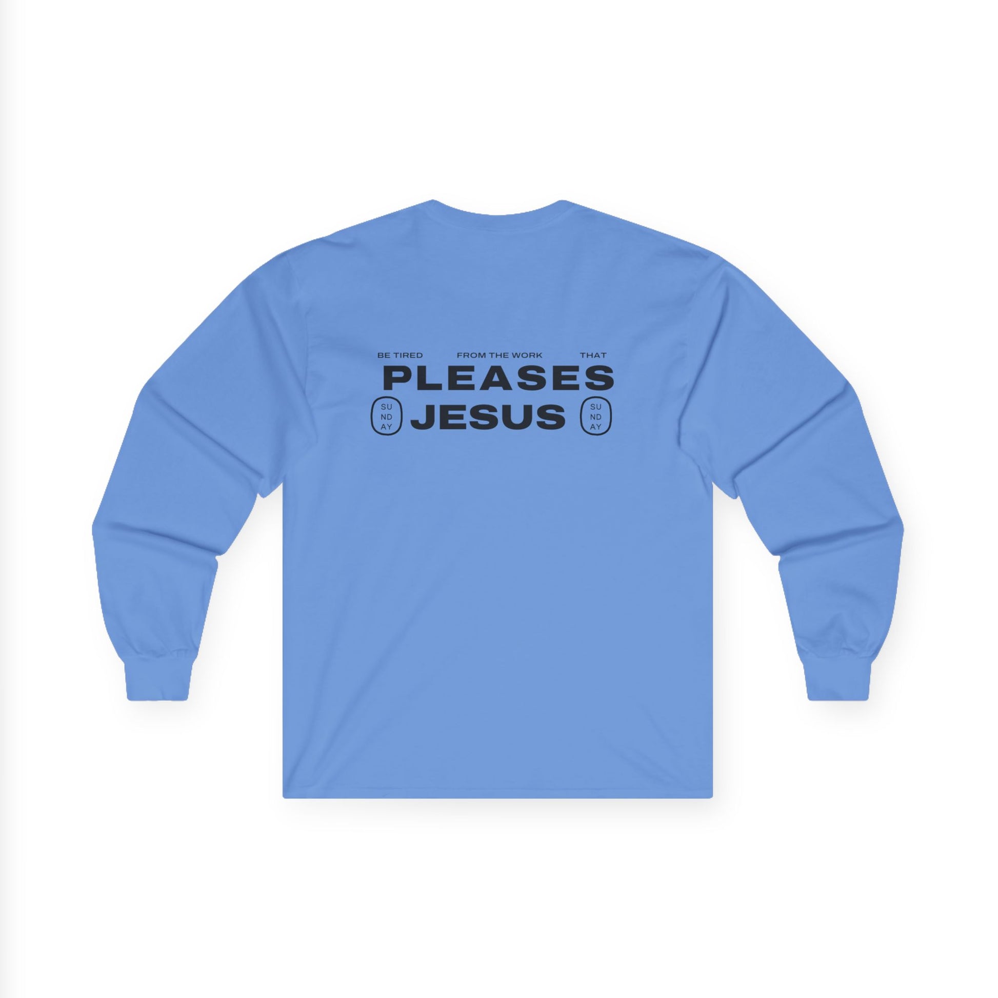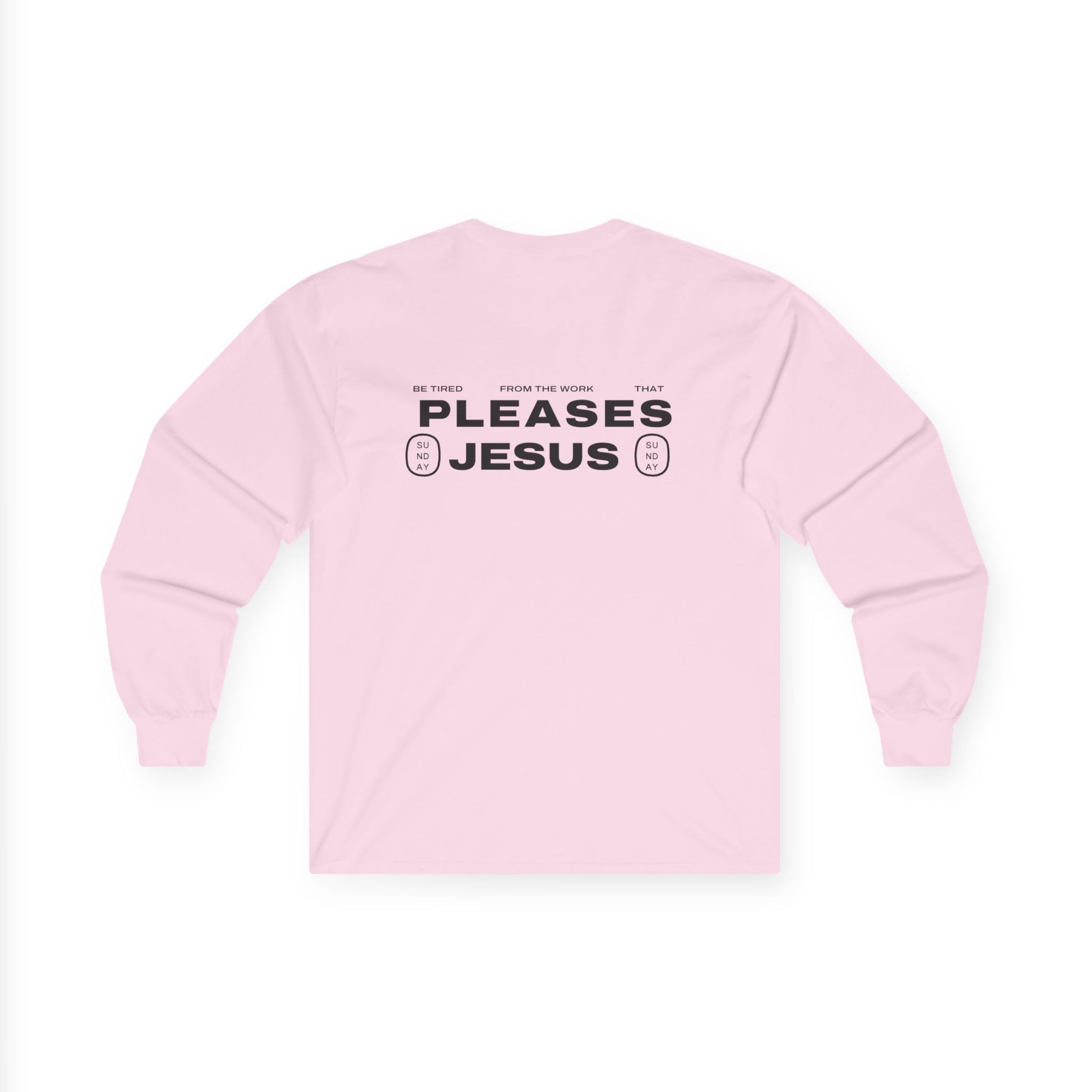 This long-sleeve tee carries a quiet, earnest message with clean, minimalist design. Made from a thicker, vintage-feel cotton, it sits comfortably on the shoulders and keeps you warm on cool mornings. The front whispers a simple phrase across the chest while the back presents bold, understated lettering — a balanced mix of subtlety and statement. It wears like a lived-in favorite: slightly structured at the collar, soft through the body, and shaped to last thanks to shoulder tape and a tubular knit that reduces seams and waste. Wear it to church gatherings, volunteer shifts, or slow Sundays when you want your clothing to reflect a calm, thoughtful faith without shouting. The fit is classic but leans small, so many wearers choose to size up for a relaxed drape.